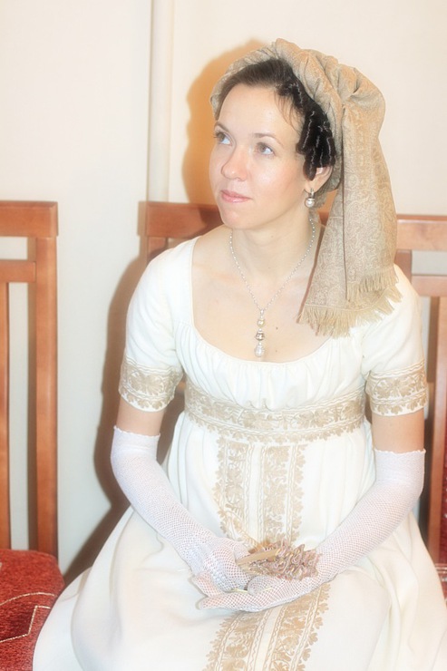 Joys Опубликовано 30 января, 2012 Поделиться #148 Опубликовано 30 января, 2012 первое платье, сшитое полностью вручную, реконструкция, можно сказатьфото, увы, пока только такие, но уж очень не терпится похвастаться были куплены 2 индийские шерстяные шали с ручной вышивкой тамбуром, размер шали 2*1м, платье уместилось с большим трудом шаль впереди собрана внахлест по кромке, сзади французский шов, а все оствльные швы закрыты подкладомно пришлось все-все-все на руках собирать, ибо оч нестабильное переплетениеЛиф - я накладывала детали из шали на детали из грации и шила как единую деталь, ничего не проклеено, дырочки для шнуровки обметаны вручную подклад лифа-хлопок, подклад юбки- шелковый фуляр прототип лифа-платье с миланской выставки Мартина Ланкастера http://costumology.livejournal.com/161953.html#cutid1 Мои работы в Контакте Ссылка на сообщение Поделиться на другие сайты Поделиться