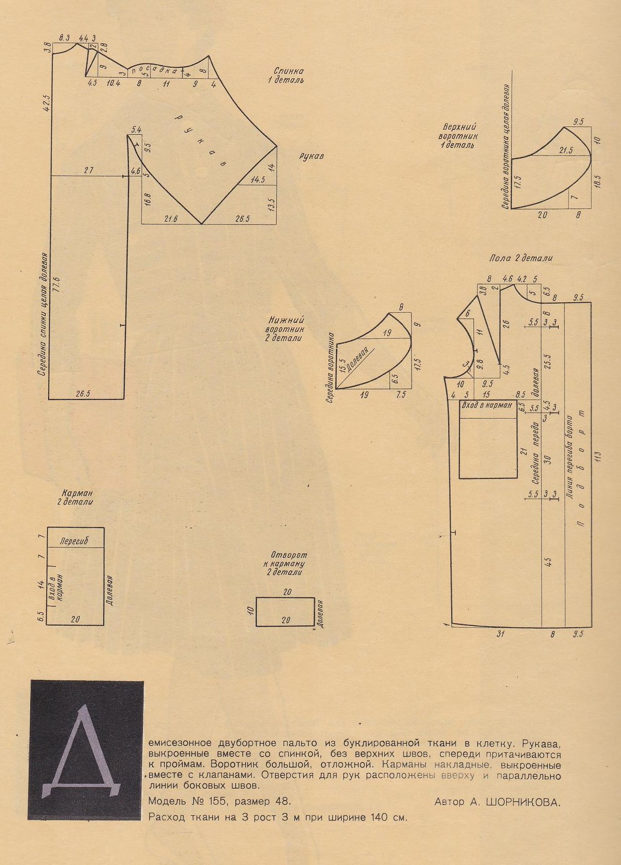 Kundze Опубликовано 17 ноября, 2019 Поделиться #515 Опубликовано 17 ноября, 2019 Есть проверенная выкройка двубортного пальто,только в прошлый раз я уменьшила полочки.Моя подруга забрала и до сих пор носит и нахваливает. Здесь можно кроем сломать рукав.Спрямить боковой срез и внимательно переработать воротник на современный лад.Вниз от вытачки разрезать и вставить карман.Или наоборот,пришить косые мега карманы в унисон рукавам.Чуть удлиннить. Время от времени все же стоит немного отдохнуть от безделья. / Ж. Кокто Ссылка на сообщение Поделиться на другие сайты Поделиться