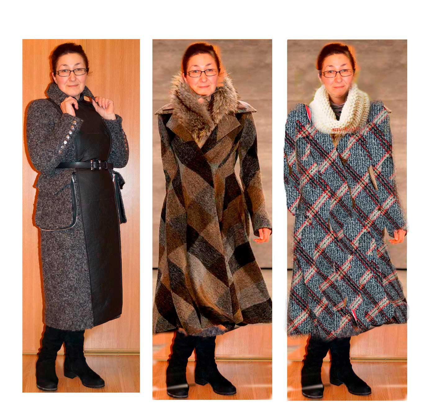 Дончанка Опубликовано 18 ноября, 2019 Поделиться #534 Опубликовано 18 ноября, 2019 Прочла ветку на одном дыхании... Как-то не восприняла Ирину в пальто-коробочке... Зато очень понравился применительно к динамичной Ирине, образ припасенный Олей 8 мартаЗаинтересовалась и решила взглянуть, как бы Ирина выглядела в такой красоте. Т.к. реальной фигуры в фас у меня нет, взяла фото в любимом пальто и прикинула в фотошопе. Ткань рисовала схематично, просто полосами. В реальности, конечно, будет не так пестро и ломано. Но представление можно получить. Делюсь:). ...ни на одной клавиатуре не существует специальной кнопки "создать шедевр"...Кетрин Айсманн. Ссылка на сообщение Поделиться на другие сайты Поделиться