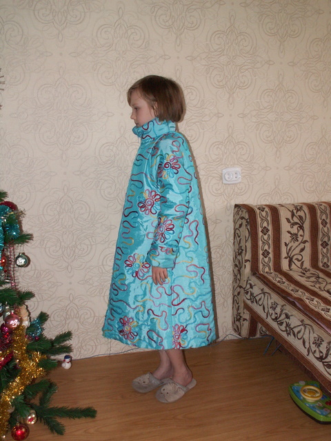 Lubushka Опубликовано 16 января, 2009 Поделиться #41 Опубликовано 16 января, 2009 (изменено) Девочки, милые... Еще раз спасибо вам всем ОГРОМНОЕ за поддержку! Мерила на дочку без верхней одежки, но воображения хватает чтобы понять, что все равно велико.Она у меня с температурой сегодня слегла, так что не до фотографий было (думала пошить немного, пока она после таблетки спать будет).В боковых швах карманы, как мне заказали, синтепон уже прикреплен по швам... Переделать не решусь. Пришел в голову вариант сделать какой-нить вариант пояса, а низ сделать баллоном...Вопчем пока опять все остановилось...А из хороших новостей, если я это пальто все-таки дошью, то носить его можно будет еще пару лет, такой запас длины рукава получился :-)Вид изнутриКарманТкань поближе Изменено 16 января, 2009 пользователем Lubushka Я Верю в чудо! Ссылка на сообщение Поделиться на другие сайты Поделиться