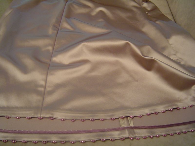 Irina Ost Опубликовано 9 октября, 2009 Автор Поделиться #511 Опубликовано 9 октября, 2009 Подгибочка платья заслуживает отдельного внимания.Атлас - стрейч укрощала тонкой клеевой ленточкой ,утюжила с изнанки с помощью картонного шаблончика.чтобы шов не проявился налицо.Бусинки на воротнике были найдены в закромах и на вышивку низа их не хватало - бегала по всему городу,как заводная - безрезультатно.пришла и решила,что если очень хочется - то всегда можно найти выход.Рассчитала интервал расшивки,при котором бусин бы хватило - и вперед.Получился вид законченный - воротник и платье заиграли в унисон.Вот она - подгибочка. Моя мастерская теперь здесь Ссылка на сообщение Поделиться на другие сайты Поделиться