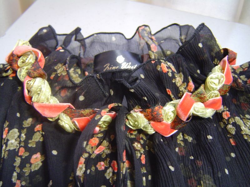 Супер-блузочка из шифона!Я эти ленточки бархатные просто скупливаю-обажаю их,они дороже смотрятся,нежели сатиновые.А цветочки наплела здорово,к месту так сказать!Пасибки,всё захапала добросовестно!