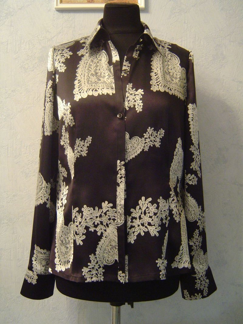 2.Блузочка номер два вызывает у меня только приятные эмоции - почему? - просто потому,что это - натуральный шелк хорошего качества от марки Тесутти,и правильного рисунка..Не поверите,но эта ткань ждала именно меня - тыщу раз ходила и покупала что-то другое..потом цены упали на распродаже - и поняла,все - если счас не возьму - то уже никогда..шилась легко и быстро - под юбочку с белыми ручными строчками - при правильном дневном свете,не искажающем оттенки - все идеально в тон..