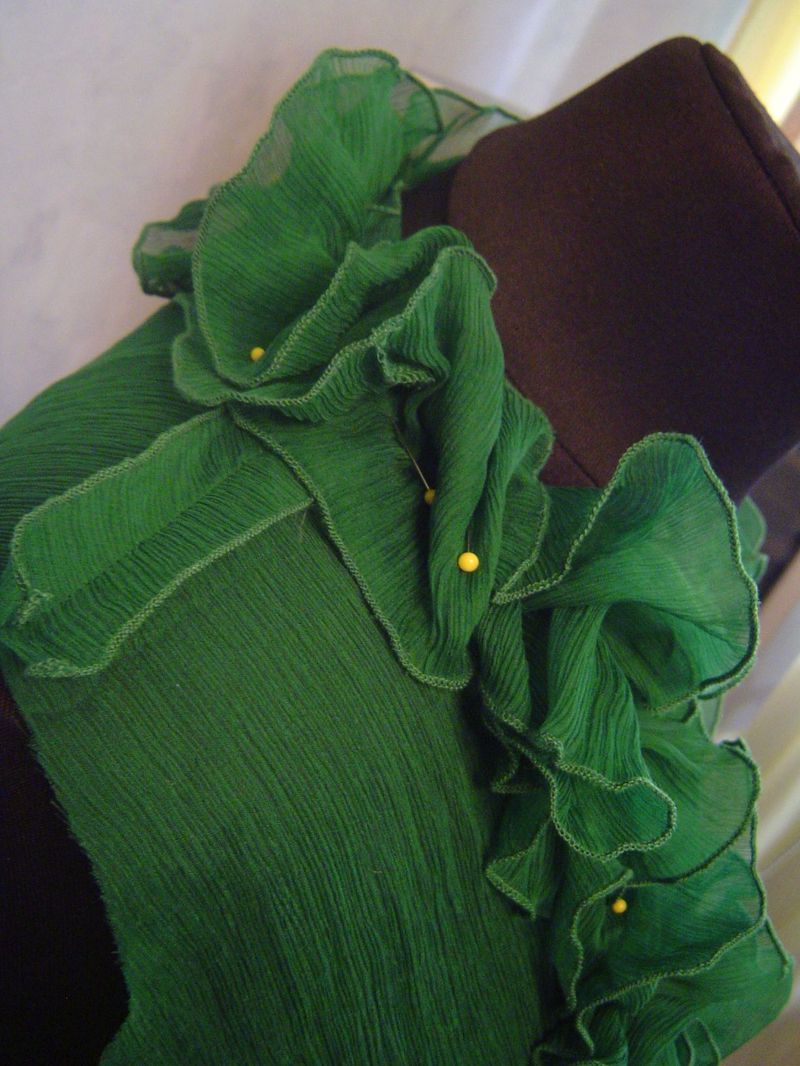 Irina Ost Опубликовано 15 марта, 2010 Автор Поделиться #952 Опубликовано 15 марта, 2010 вот дошила блузку - показываю в человеческом виде..Шила и по ходу слегка обалдевала от возможностей,которые креш-шифон дает..в сборках в первую очередь..ПесТня,а не ткань..Намочила перед раскроем,сделала заготовки для рюшей,причем интересные эффекты получаются,не только когда шифон рвешь по утку,но как выяснила - и слегка под наклоном..срезы обметала - потом с этой полосой делай что хошь..можно разной ширины делать - тоже супер..На полочках перекручивала,выворачивала,как хотела - сам в цветы ложится..На манекене все выложила,потом ручками закрепила - вуаля..Да,чувствую,это моя ткань на ближайшее время..и всем на лето рекомендую..хотела бы еще сарафан в голубых тонах навернуть - очень впечатлилась летней коллекцией от Блюмарин..кстати,маки - там тоже фавориты.. Моя мастерская теперь здесь Ссылка на сообщение Поделиться на другие сайты Поделиться